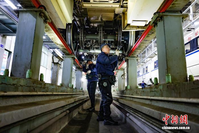 去年新建成投用的四线检修库也为新春检修提供了硬件支撑。8个检修列位同步启用,有效减少了动车组调移量,缓解了检修压力,夜间检修效率显著提升。“列位充足了,多组列车能同步检修,我们有更充裕的时间把每个细节做精做细。”值班所长陈鑫说。