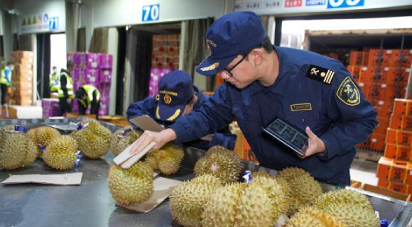 国门前的“年味”担当:广西友谊关海关节前水果查验忙