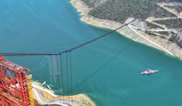 黄百铁路红水河铁路大桥首节拱肋吊装成功