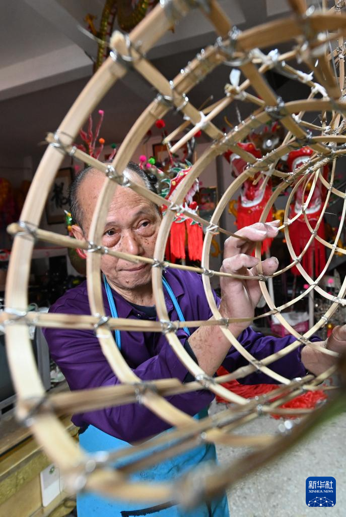 1月16日,在广西宾阳县宾州镇三联街,邹玉特在装龙珠。
