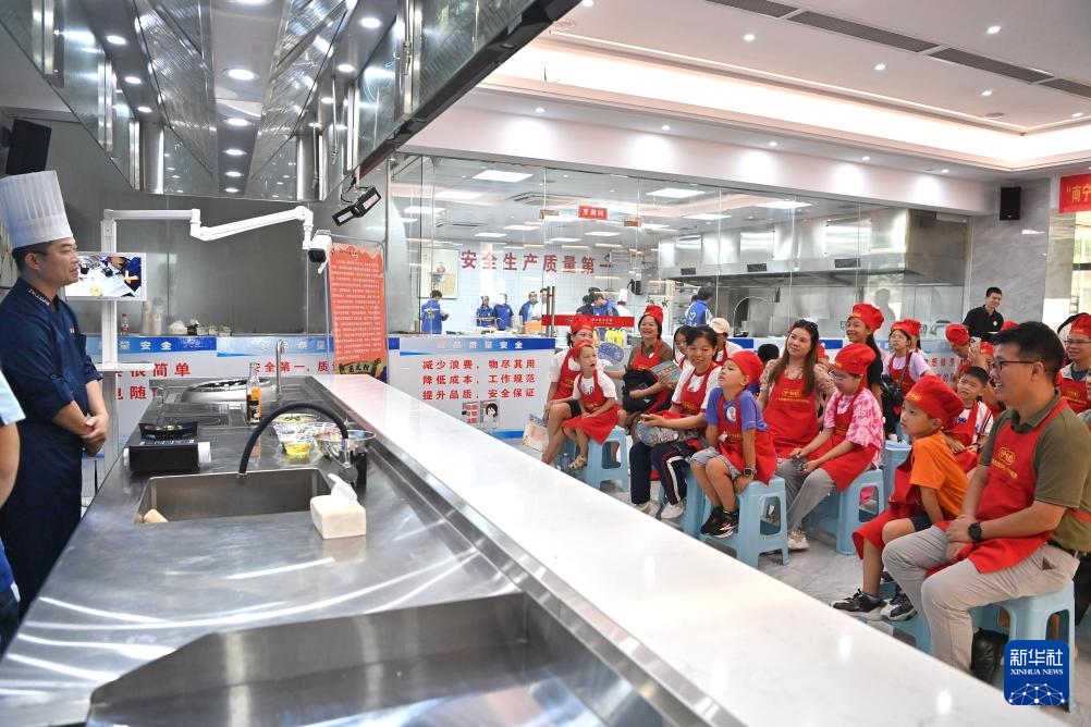 8月10日,孩子和家长在南宁市第一职业技术学校学习制作老友粉。
