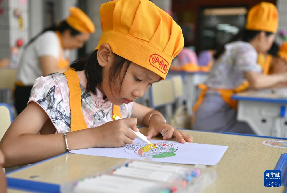 8月10日,孩子在南宁市第一职业技术学校彩绘老友粉。