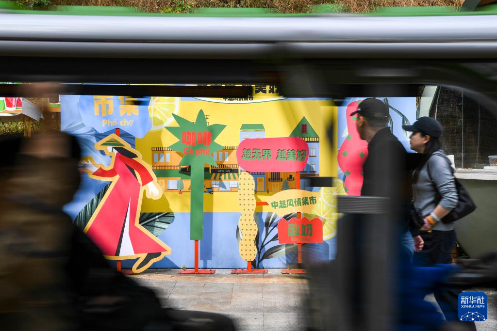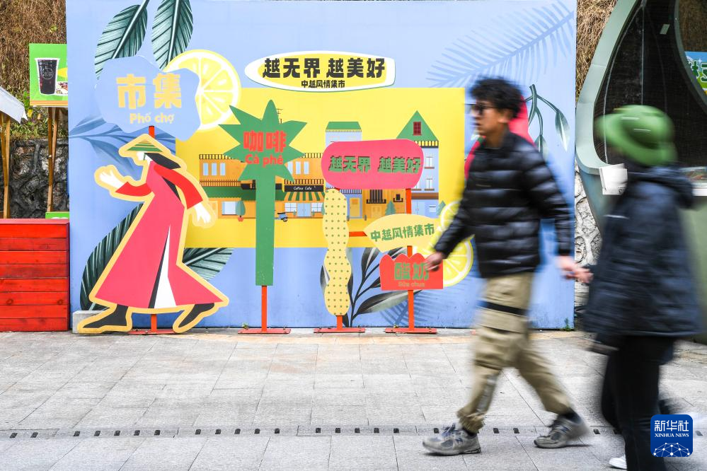 12月15日,在中越德天(板约)瀑布跨境旅游合作区,游客游览中越风情街。