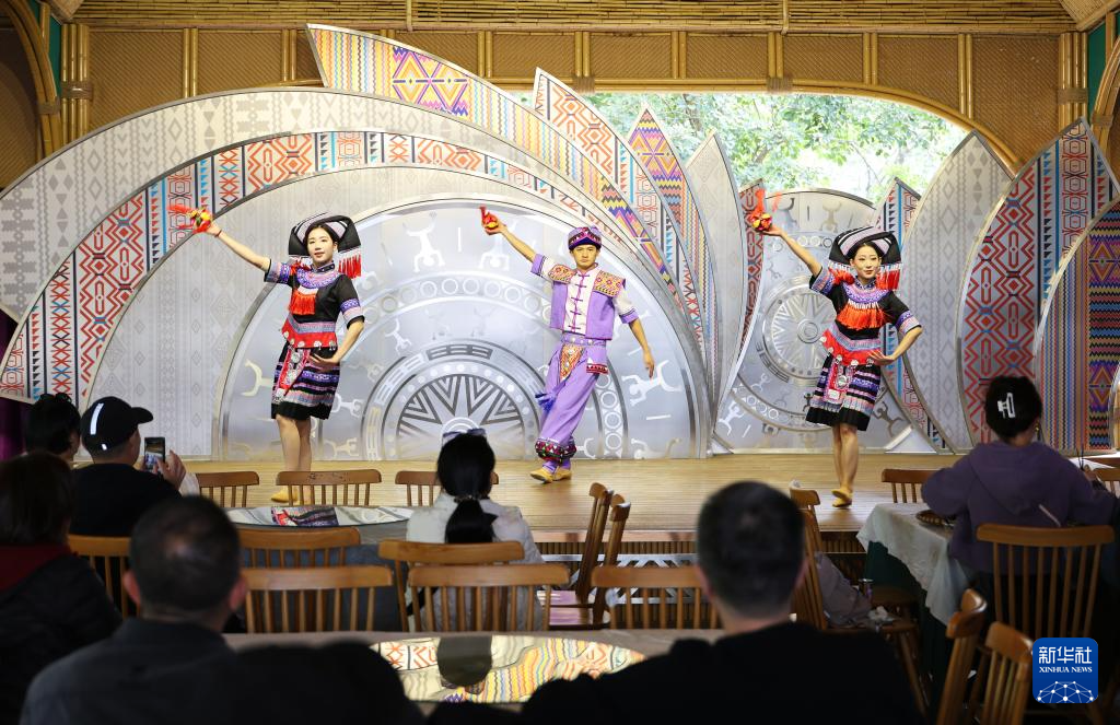 12月15日,在中越德天(板约)瀑布跨境旅游合作区,演员在表演舞蹈。