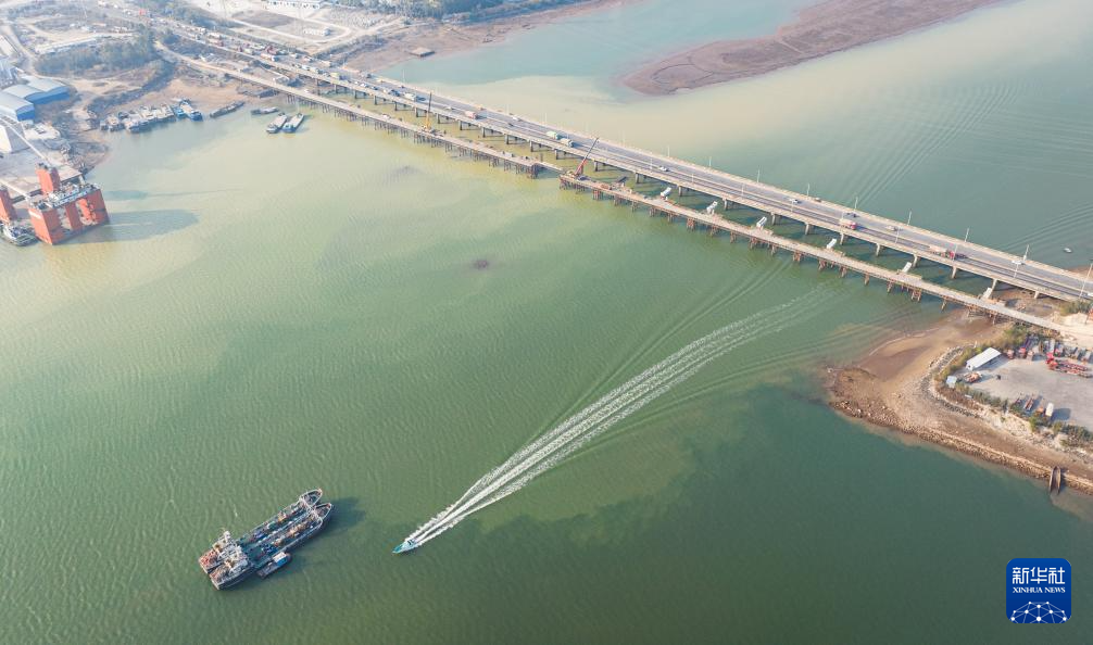 2025年1月1日,228国道穿过钦州港金鼓江航道(无人机照片)。