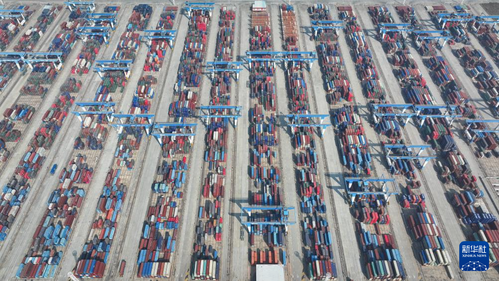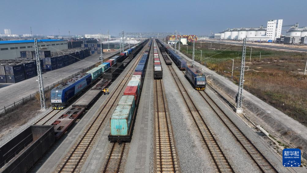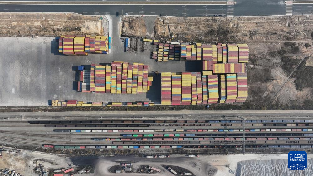 2024年12月31日,铁海联运班列停靠在钦州港东站(无人机照片)。