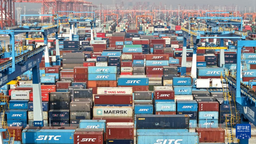 2025年1月1日拍摄的钦州港码头(无人机照片)。