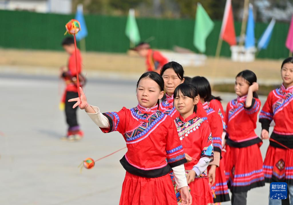 当日,广西梧州市长洲区倒水镇开展中小学校民族传统体育项目课堂交流活动,师生们在抛绣球、打陀螺、板鞋竞速等特色传统体育运动中进行交流和探索,不断提高乡村学校体育课堂的质量和水平。