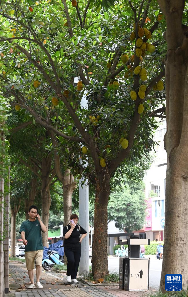 眼下,广西南宁市种植在城市道路两边的不少果树陆续结果。据介绍,南宁市中心城区部分道路旁种植了多种果树,每逢挂果时节,路树枝头累累硕果成为一道独特的城市景观。