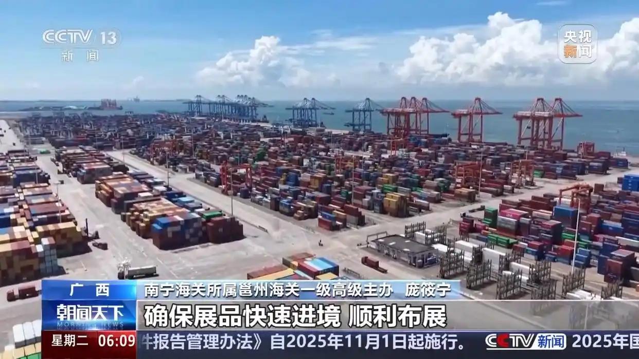 南宁海关所属邕州海关一级高级主办庞筱宁:为保障进境展品高效通关,南宁海关出台并落实包括设置展览品专门通道、简化手续助力东盟各国特色食品化妆品参展等15条便利措施,确保展品快速进境、顺利布展。