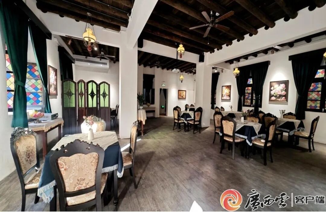 走进大同酒店旧址,仿佛穿越到民国时期。收银台、宾客休息区、中西餐厅等,均按照原貌进行了场景复原。三楼是客房区,1925年9月,中共广东区委执行委员会常务委员兼军事运动委员会书记周恩来秘密来到梧州,便下榻于此。