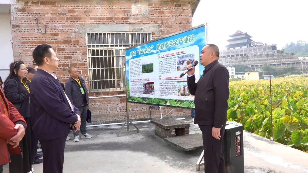 钟洪指出,贺州地处桂粤湘三省区交界,紧邻粤港澳大湾区,既是大西南东进粤港澳的关键通道,还坐拥“世界长寿市”等称号,更是全国首个实现国家级出口食品农产品质量安全示范区县域全覆盖的地级市。这里自然资源丰富、生态环境优良,孕育出的香甜香芋深受国内外消费者青睐。贺州市委、市政府高度重视香芋产业发展,不仅出台专项三年行动政策,还构建“政府引导、企业主导、农民参与” 的推进机制,2025年,贺州市实现香芋种植面积17.16万亩、总产量将超过35万吨,全力打造全国领先的香芋产业链集散地。