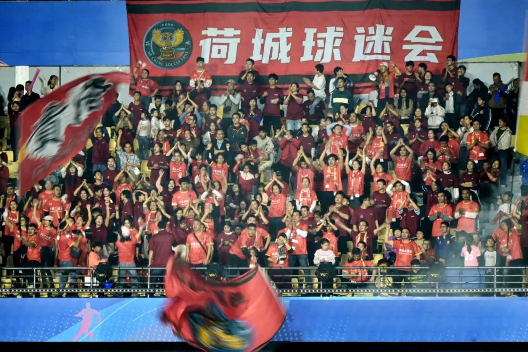 贵港“荷城球迷会”球迷在看台上助威,尽显主场支持。赛事组委会供图