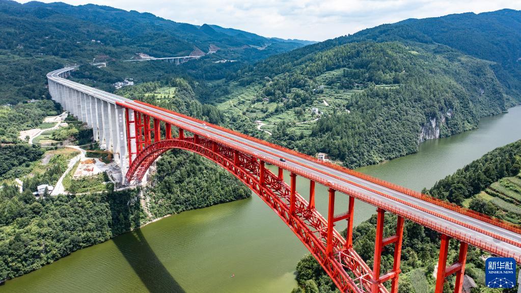 车辆行驶在德余高速公路青杠坡至合朋溪路段(7月10日摄,无人机照片)。