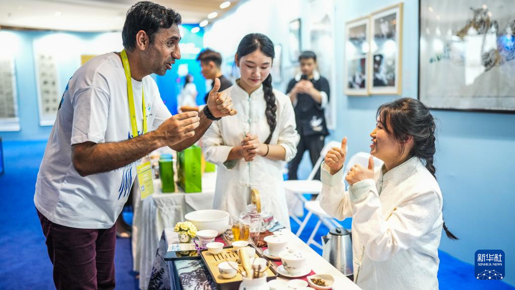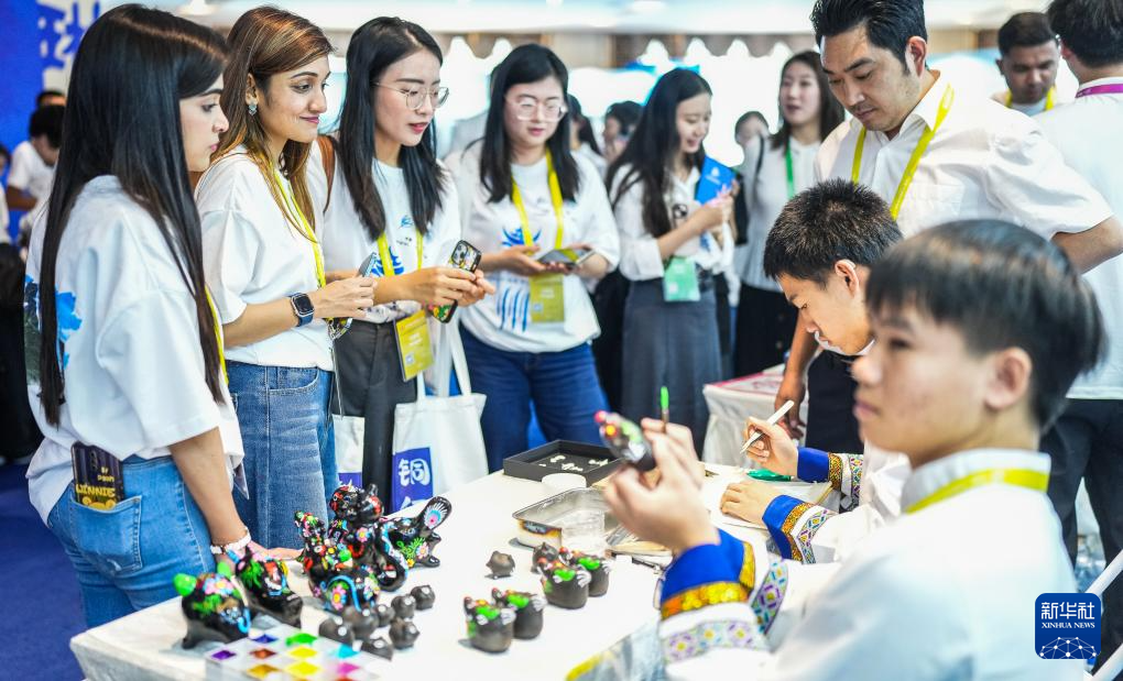 8月21日,留学生参观非遗手工作品。