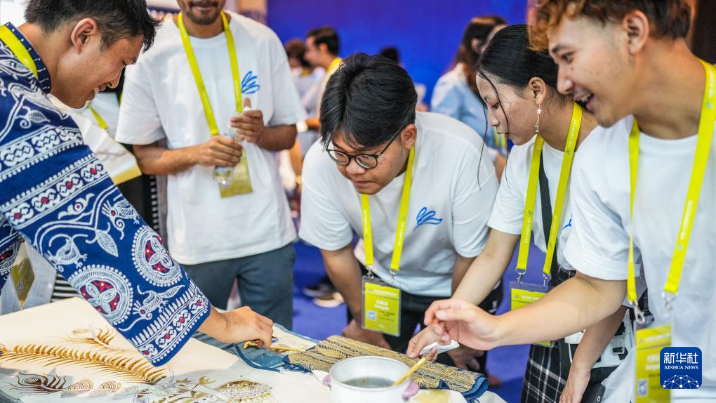 8月21日,留学生参观蜡染工艺展示。