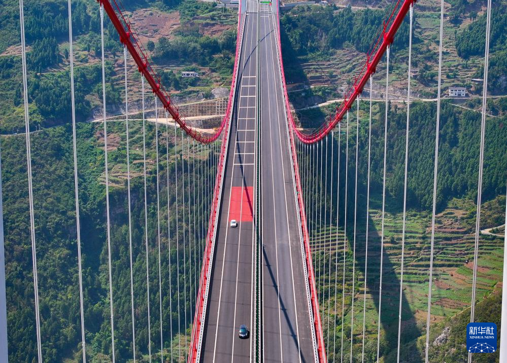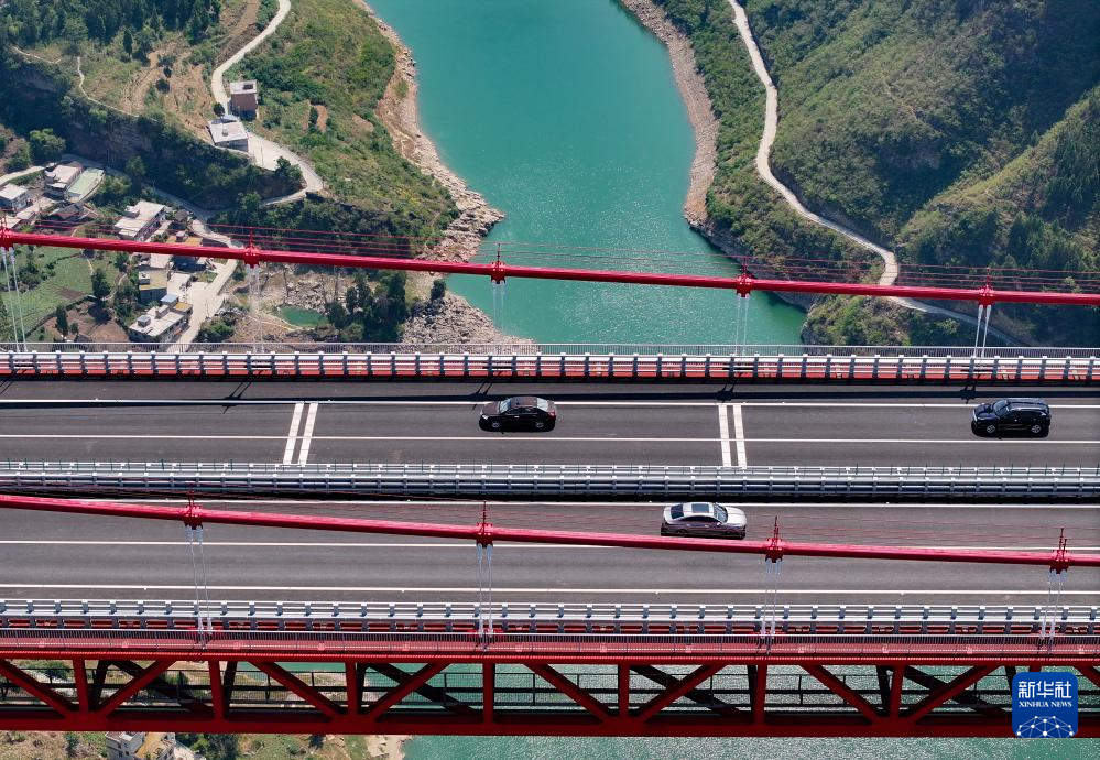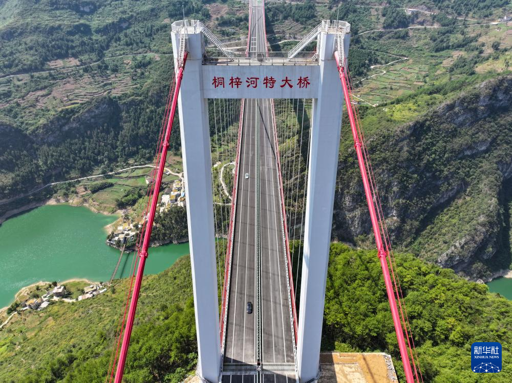 9月13日,车辆行驶在金仁桐高速桐梓河特大桥上(无人机照片)。