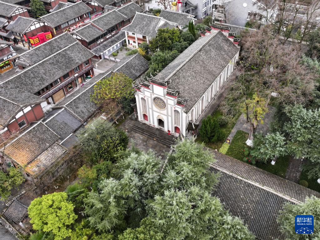 这是位于遵义市内的红军总政治部旧址(2025年1月9日摄,无人机照片)。