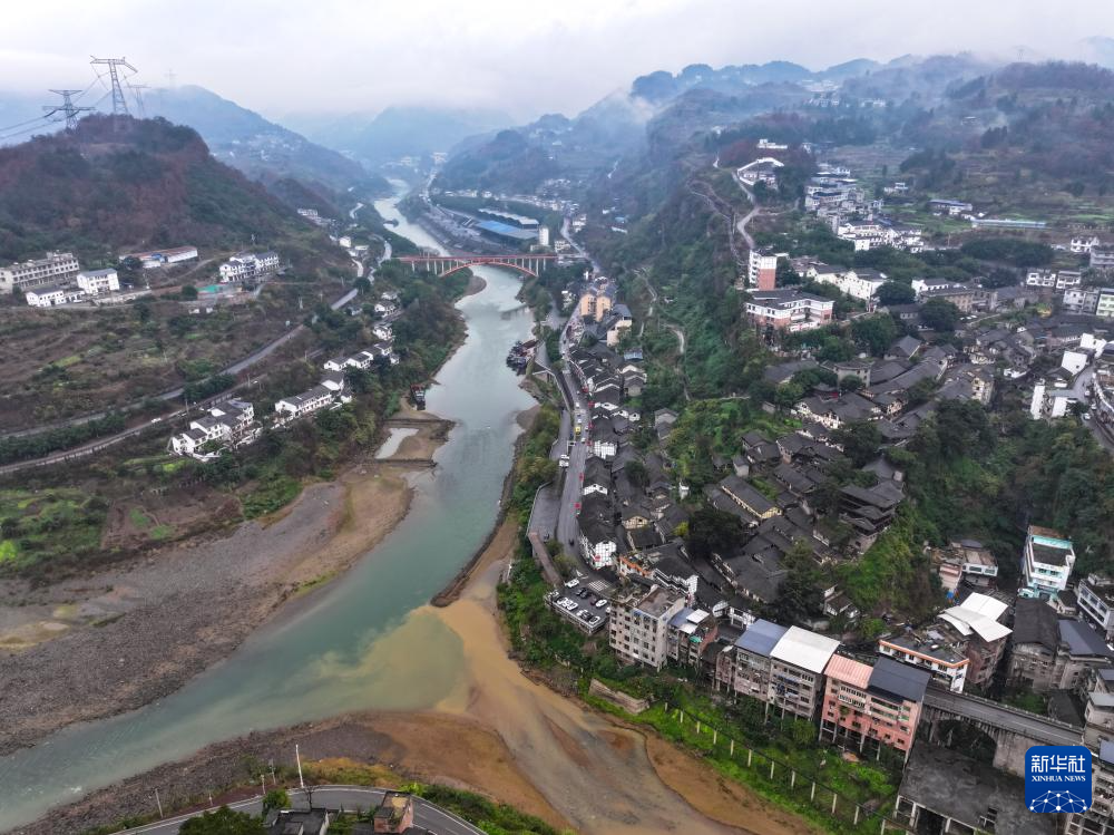 这是位于遵义市习水县境内的四渡赤水之土城渡口(2025年1月7日摄,无人机照片)。
