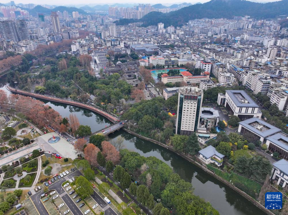 湘江河流经遵义市城区(2025年1月9日摄,无人机照片)。