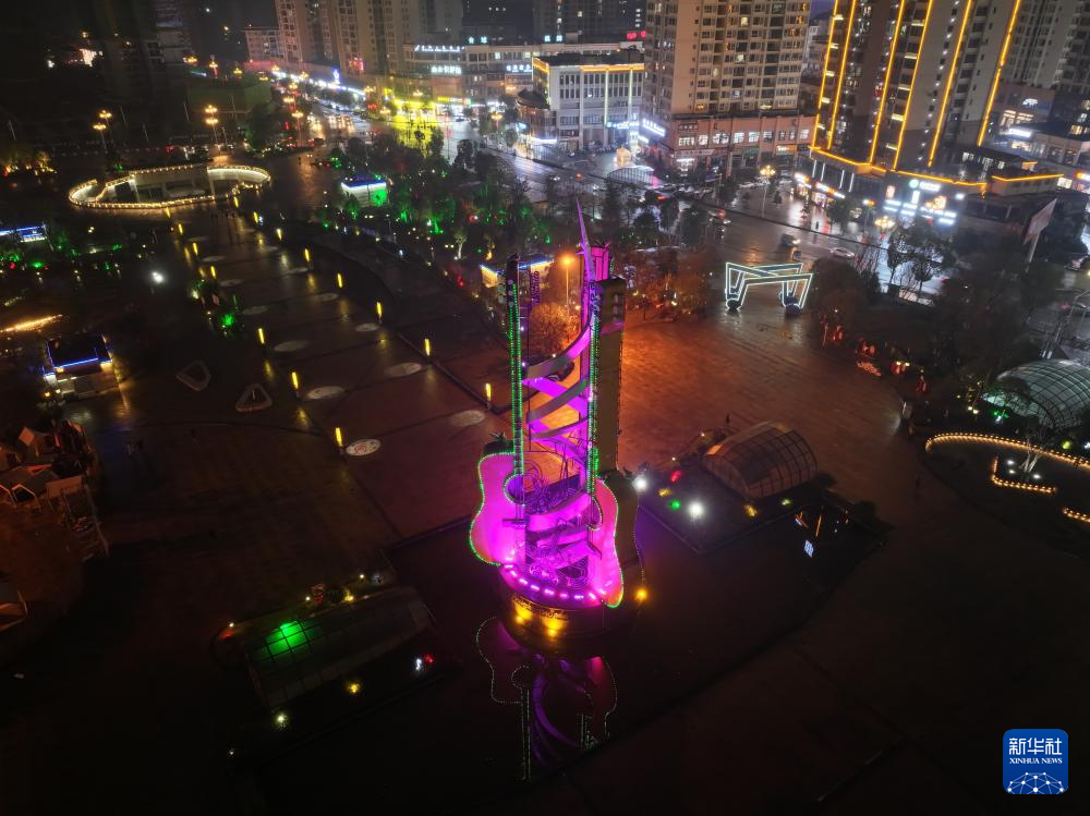 这是位于遵义市正安县的吉他文化广场(2025年1月8日摄,无人机照片)。