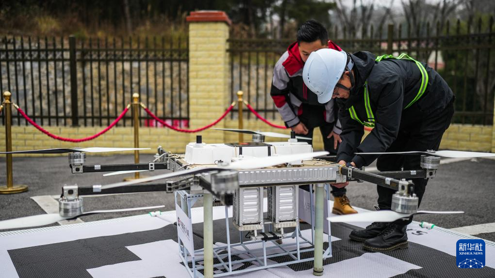 1月15日,在贵州省修文县,工作人员对执飞无人机进行检查。