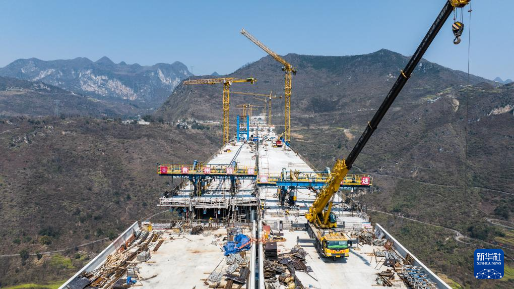 目前,纳晴高速六枝特大桥建设已进入最后冲刺阶段,预计5月中旬实现合龙。