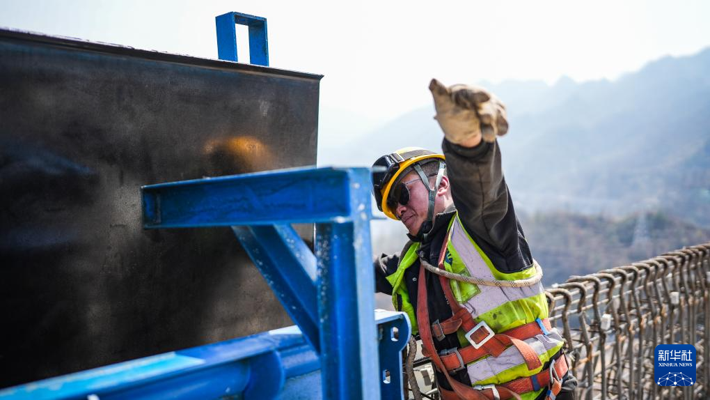 工人在六枝特大桥上施工(3月11日摄)。