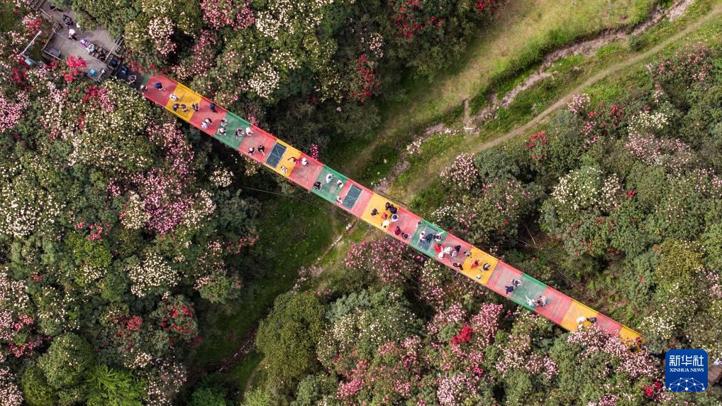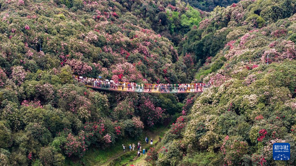 4月17日,游客在毕节市百里杜鹃金坡景区观赏游玩。