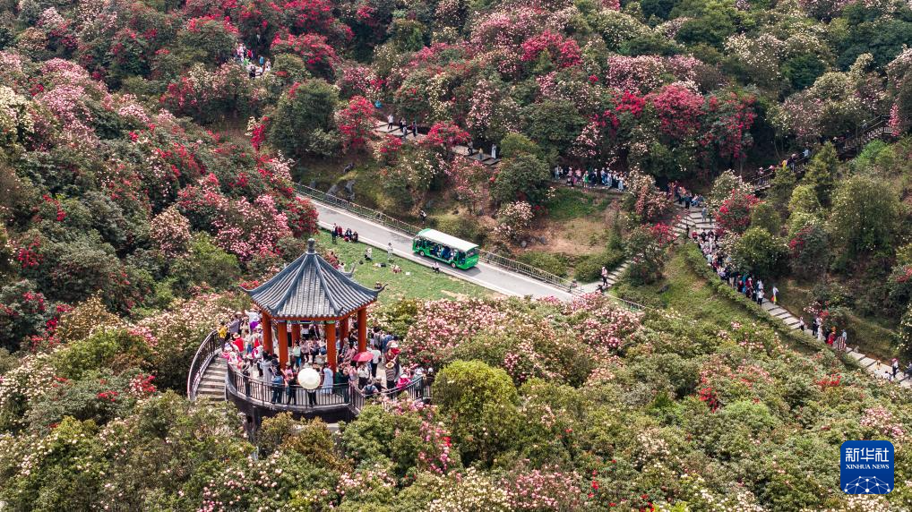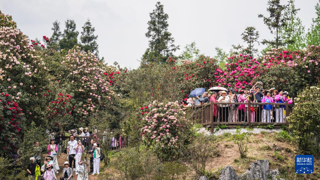 四月芳菲,大地春归。近日,贵州省毕节市百里杜鹃景区的杜鹃花开始进入盛花期,前来观赏游玩的游客络绎不绝。