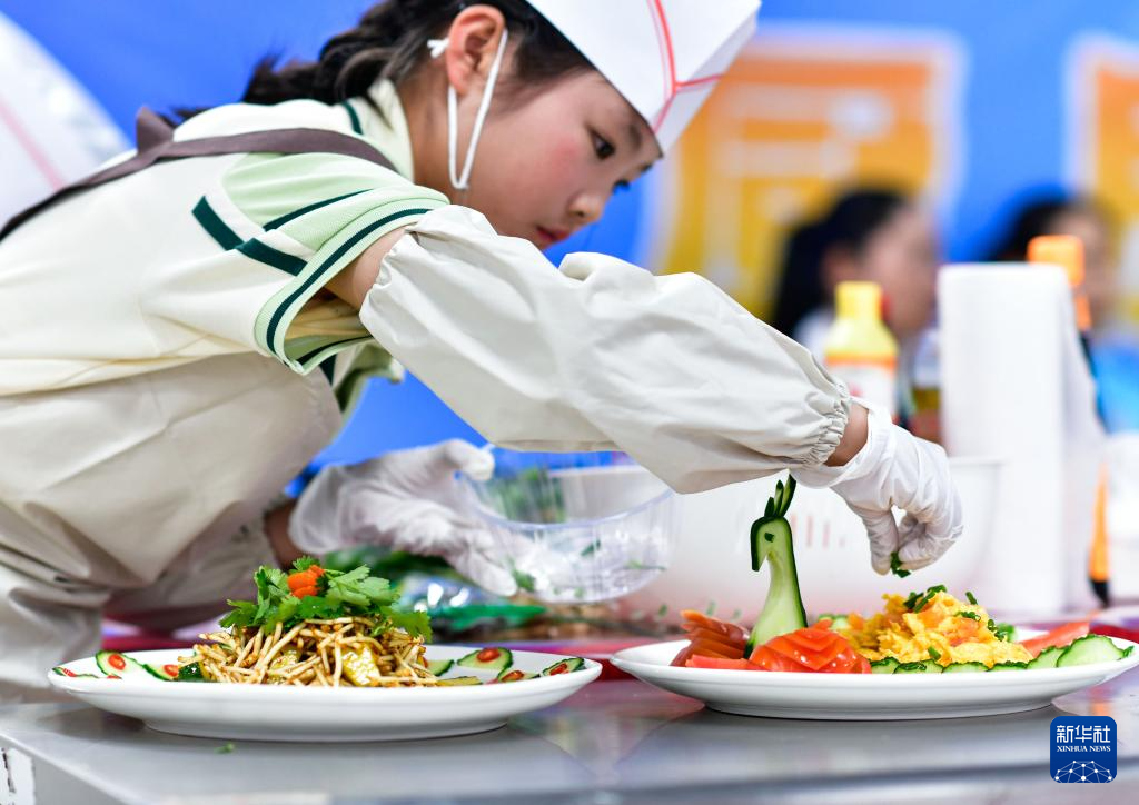 4月27日,学生在贵州省龙里县中等职业学校赛场参加烹饪比赛。