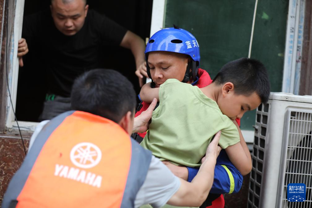 6月24日,救援人员在贵州省榕江县转移被困群众。新华社记者胡星 摄