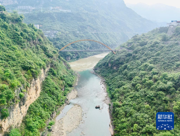 赤水河的支流桐梓河小水电站清理整改后,河流恢复自然流态,与赤水河干流连通(5月14日摄,无人机照片)。新华社发
