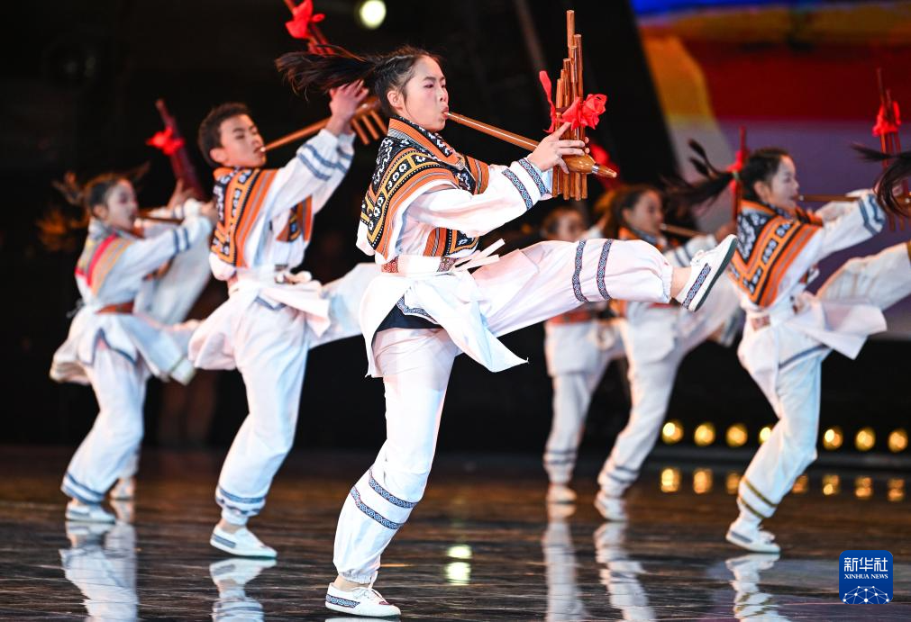 2月3日,孩子们在2026贵州“村晚”现场展示芦笙舞《滚山珠》。