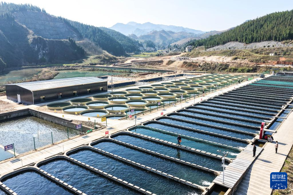 2021年以来,贵州省岑巩县依托下溪水库饮用水源地的优质水源,建立国家淡水渔业工程技术研究中心(武汉)贵州分中心岑巩基地,通过构建“产学研用”创新链,大力发展三文鱼生态养殖产业,实现从水质适配、鱼卵孵化到绿色养殖的全链条突破,让原本生活在海里的鱼类扎根深山。