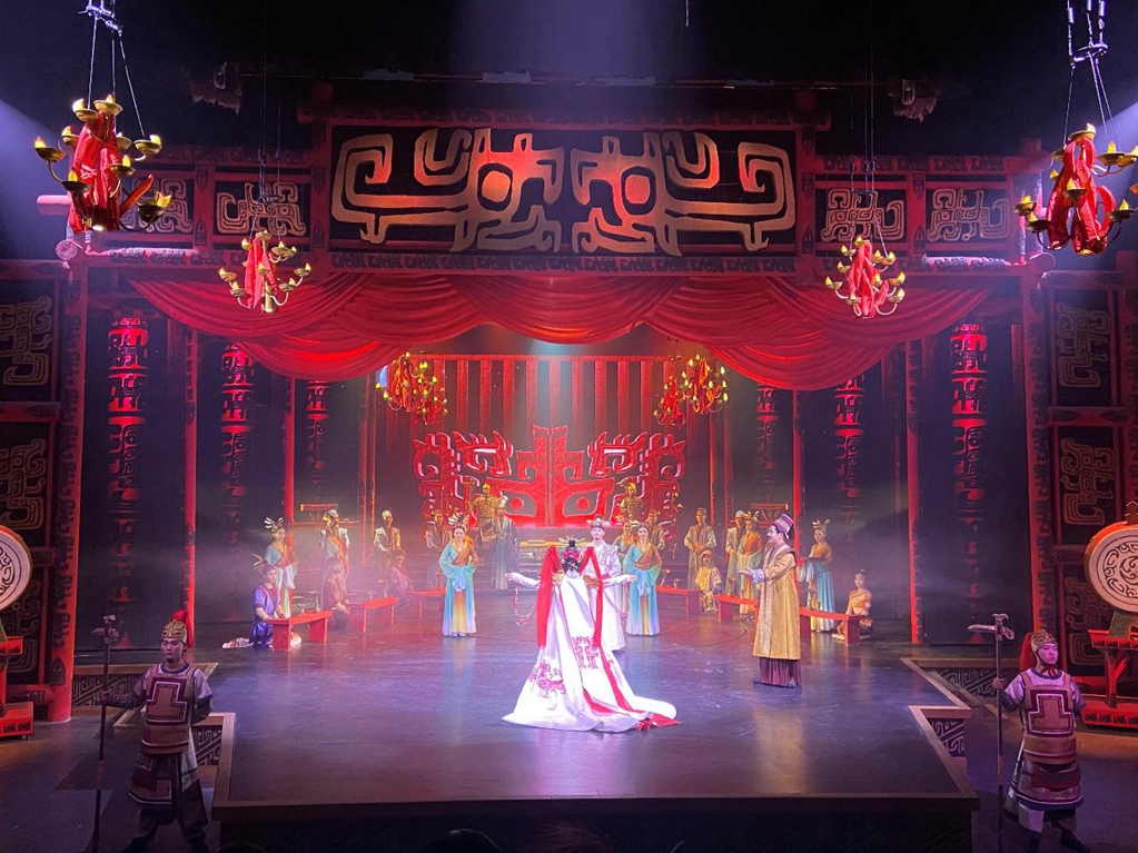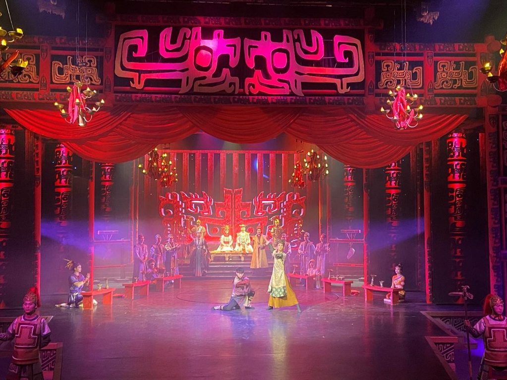 2月17日晚,剧目《殷墟遗梦》在河南安阳殷墟考古文旅小镇上演。该剧目以殷商文化结合小镇旅游业态,作为输出文化内核,打造文化交流平台,成为安阳文化的新名片。新华网宿鑫 摄