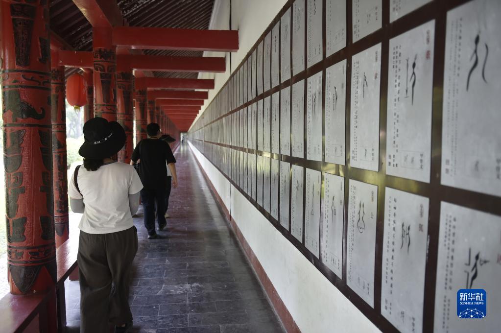 6月26日,游人在河南省安阳市殷墟遗址甲骨碑廊游览。