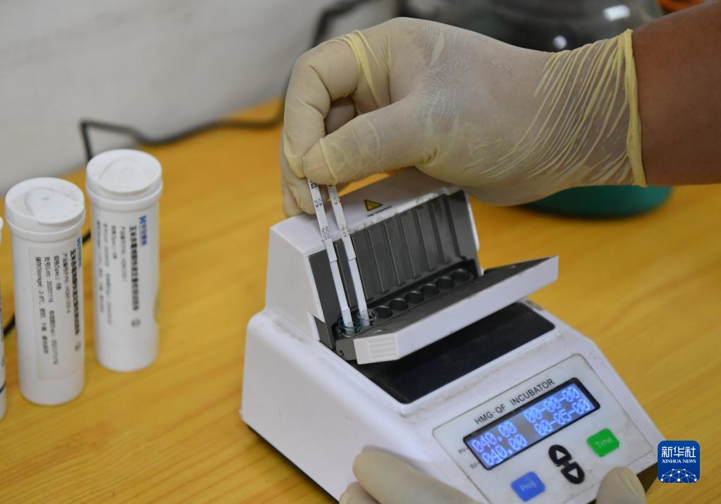 7月5日,河南唐河国家粮食储备库的工作人员对入库小麦面粉样本进行呕吐毒素检测。