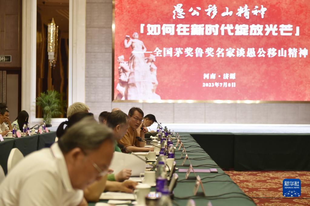 这是7月8日在河南省济源市拍摄的愚公移山精神座谈会现场,济源是愚公移山神话故事的发源地。