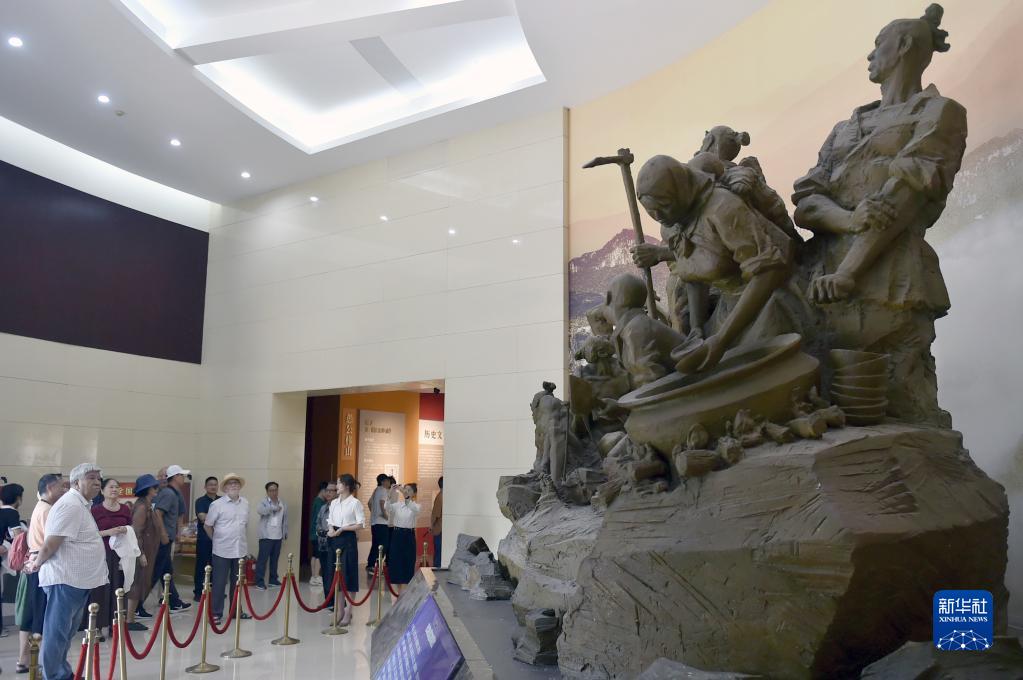 7月8日,嘉宾在河南省济源市的愚公移山精神展览馆参观。