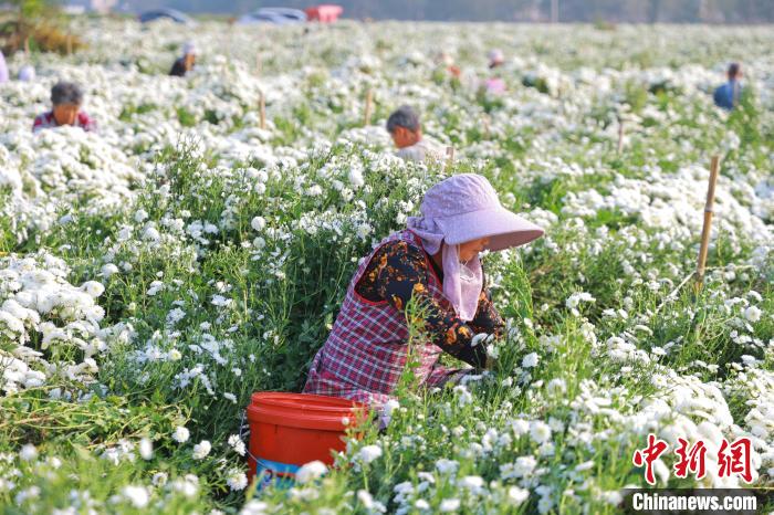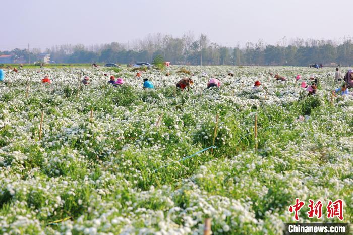 近日,河南商丘柘城县申桥乡静馨农业合作社的菊花地迎来采摘期。据了解,该合作社由返乡大学生创办,共流转土地300余亩种植菊花,亩产效益达万元以上,促进了当地农户的增收,助力乡村振兴。