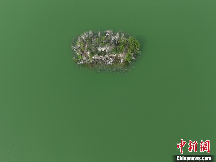5月14日,河南郑州市中牟县雁鸣湖碧波浩渺,不时有水鸟飞过,呈现出一幅美丽生态画卷。图为雁鸣湖风光。(无人机照片)中新社记者刘鹏 摄