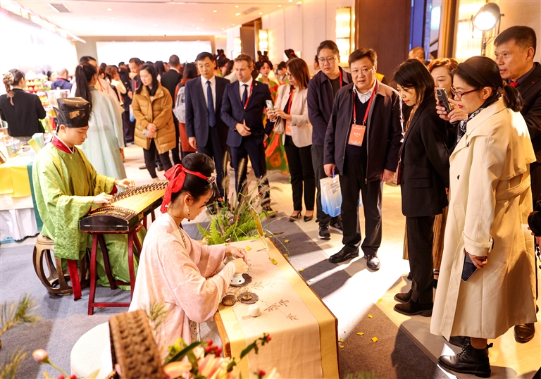 中外嘉宾饶有兴致地在非遗市集上参观。河南日报记者邓放 摄