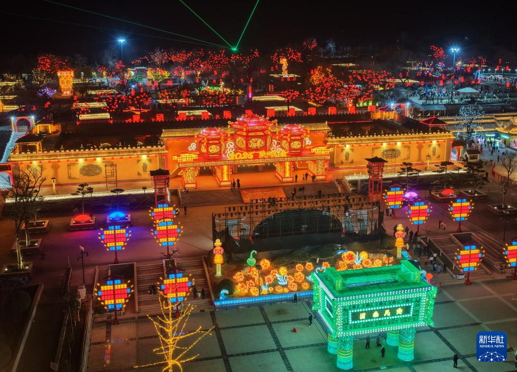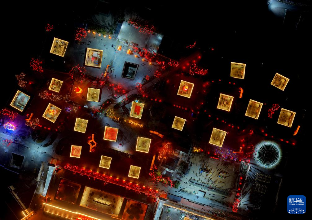 2月12日拍摄的第九届陕州灯会现场(无人机照片)。