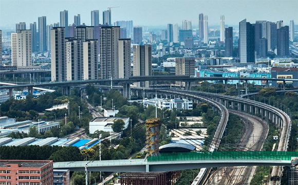武汉古田一路北段工程跨铁路立交桥成功转体