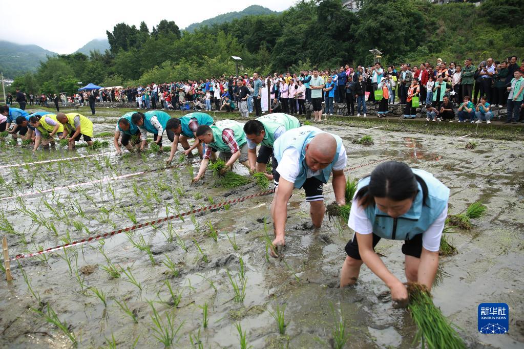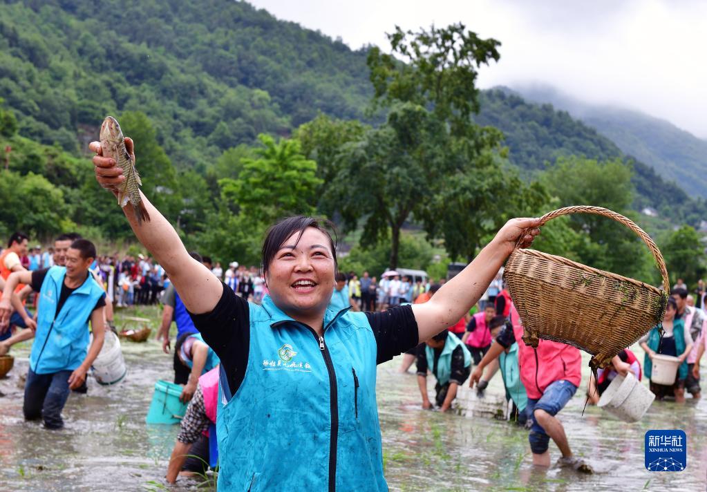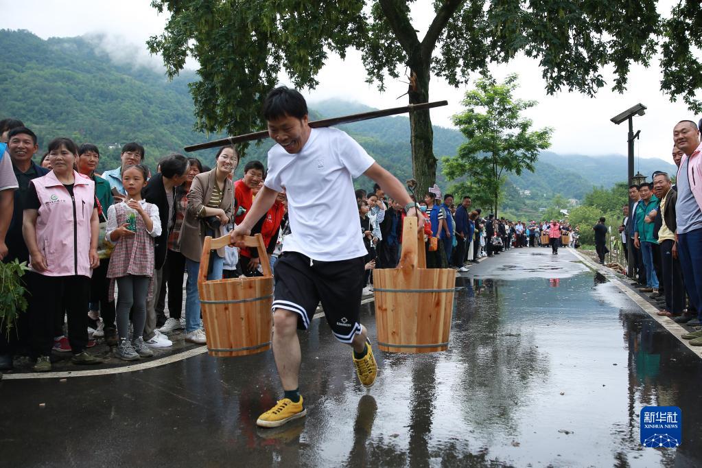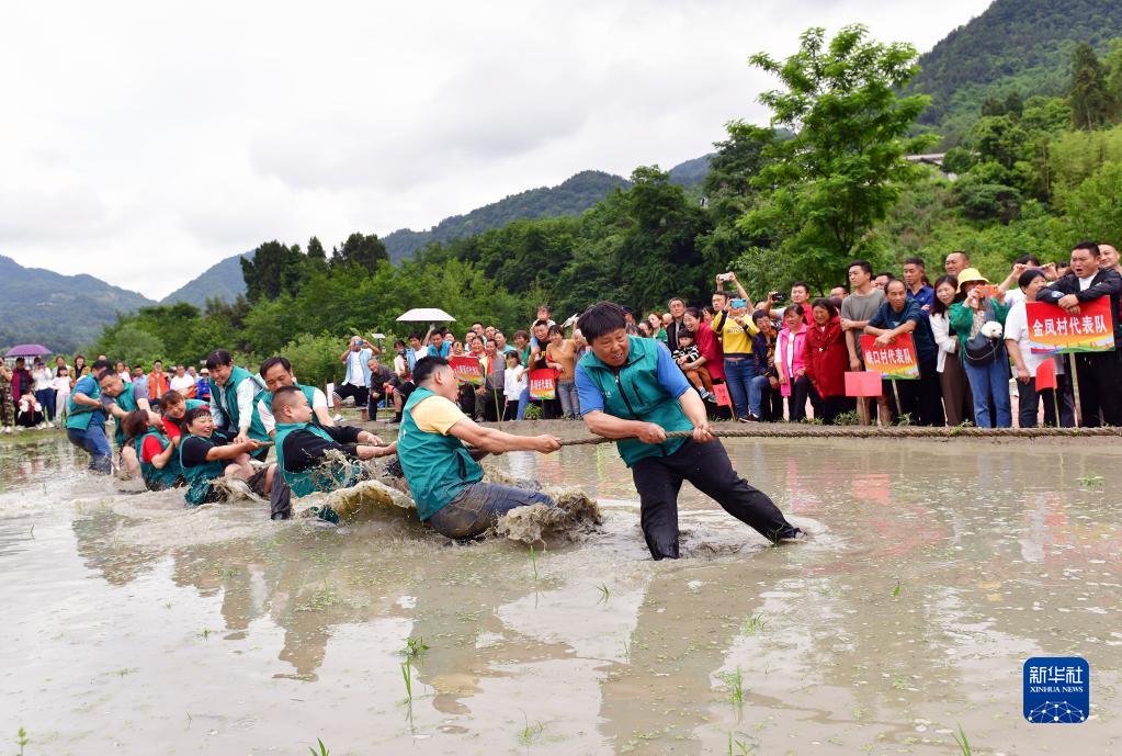 当日,湖北省宜昌市秭归县九畹溪镇举办农民趣味运动会,来自各村的200多名农民进行拔河、挑水、插秧、摸鱼等趣味竞技比赛,乐享农耕文化的快乐。