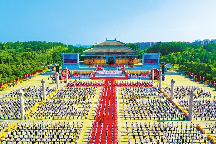 6月13日,癸卯年世界华人炎帝故里寻根节在炎帝神农诞生地随州举行。图为拜祖大典仪式现场。(湖北日报全媒记者 田悦摄)