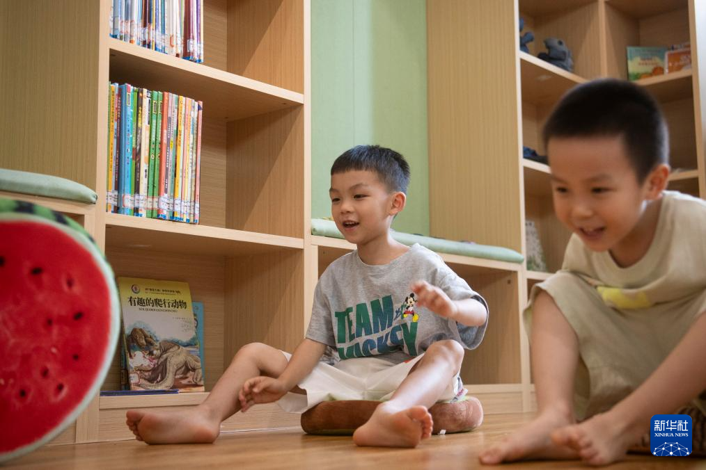 8月14日,在黄石宏维星都书房,小朋友们在玩耍。