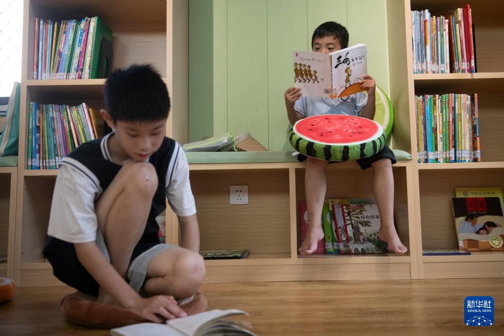 8月14日,在黄石宏维星都书房,小朋友们在看书。