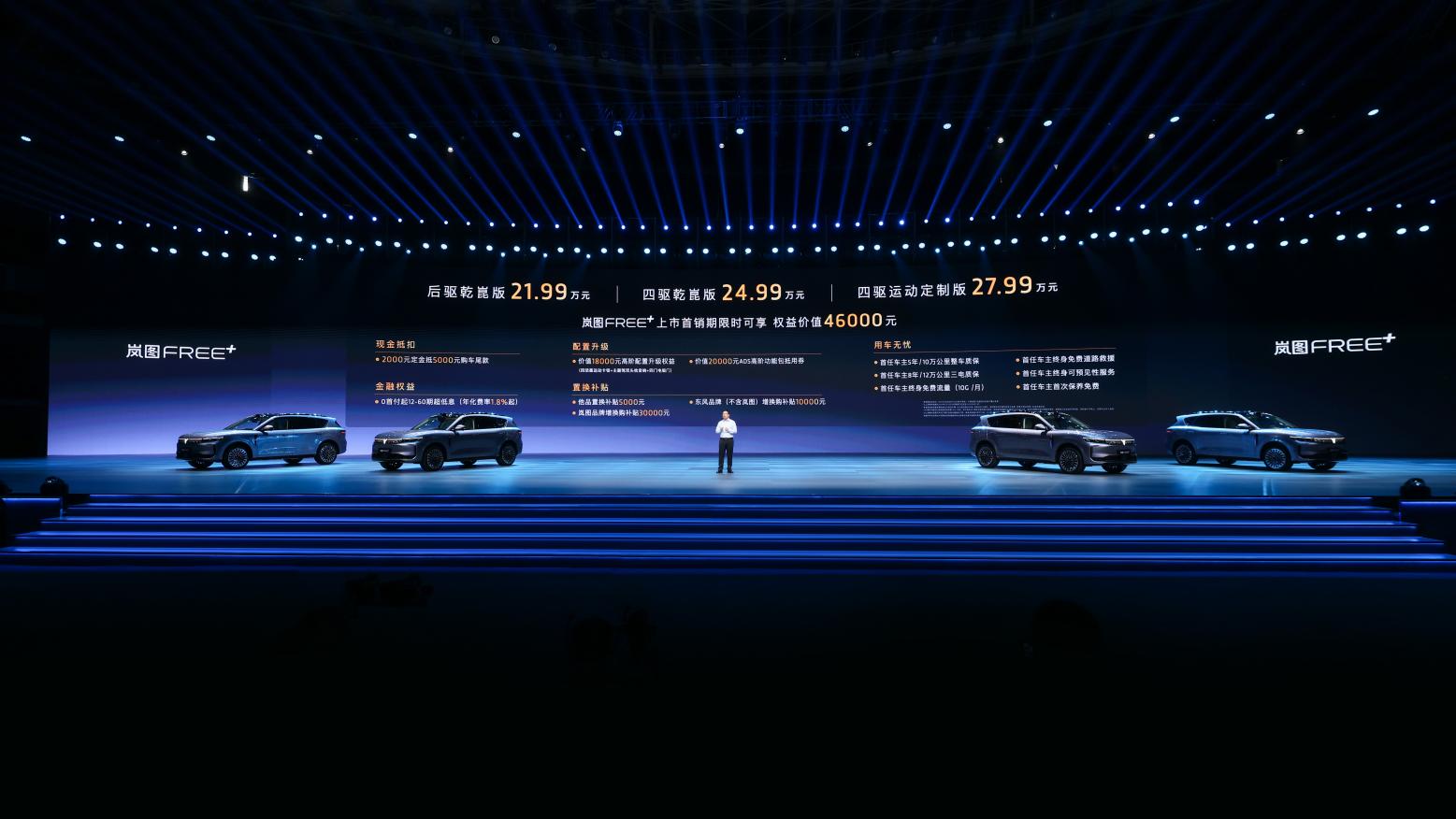 在此次用户之夜上,凝聚了岚图四年技术沉淀与用户洞察的“极智驾享大五座SUV”岚图FREE+重磅上市,共推出三款车型,售价21.99万元—27.99万元,同时还为用户提供价值高达46000元首销权益。